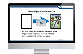 White-paper-in/full-color-out jobs are the wave of the future. With high-speed, quality color digital inkjet printing, you no longer need to store and manage your customer’s pre-printed shells. Additionally, by offering TransPromo communications to your transactional print jobs you’ll drive marketing and customer service messages more effectively.